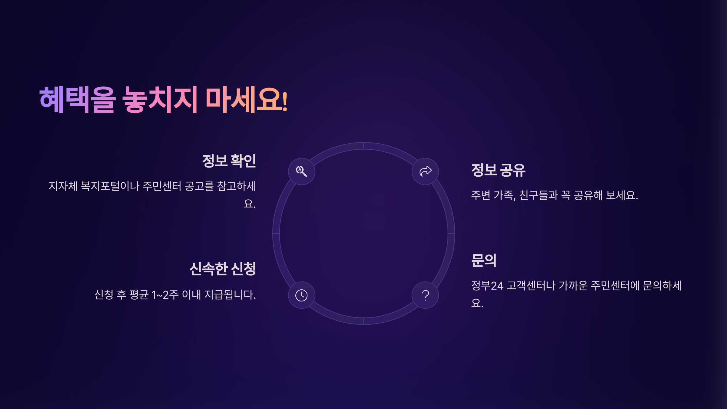 - ✔ 지자체별 한시적 지원금과 병행 가능 (지역별 확인 필수)